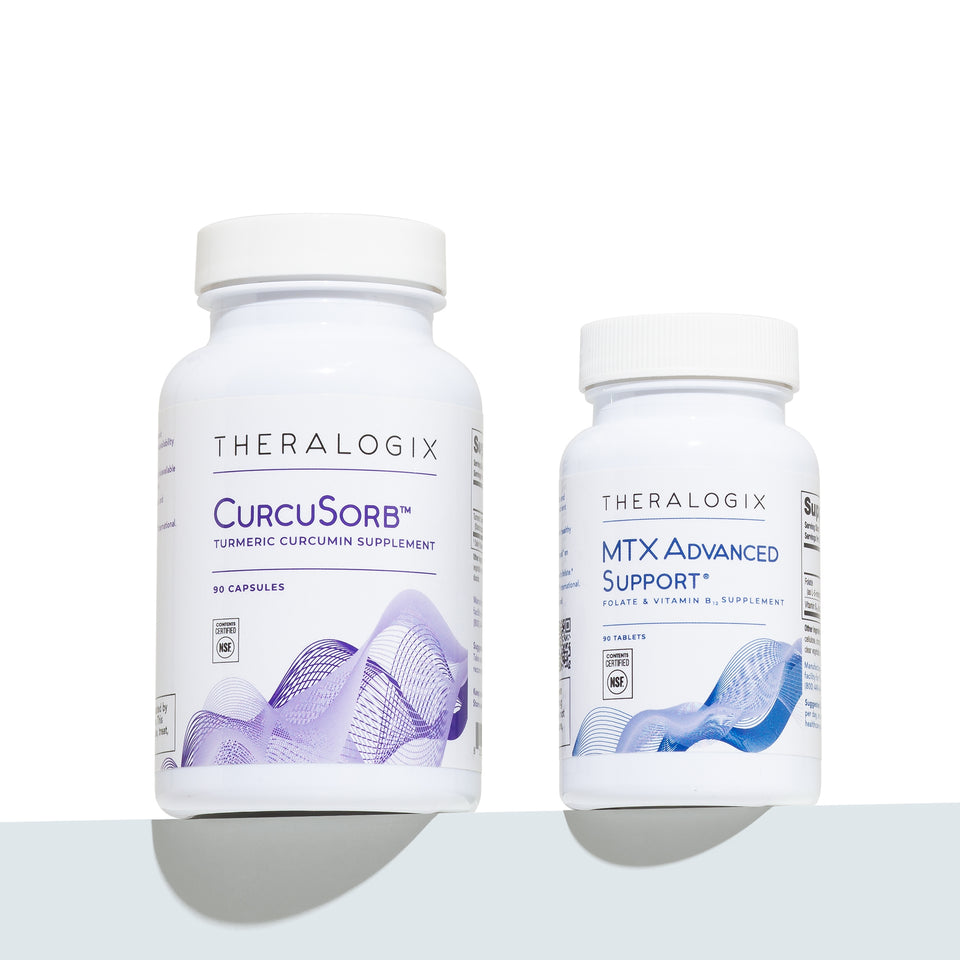 MTX Advanced Support + Curcusorb 结合甲基化叶酸和维生素 B12 提供营养支持,同时服用甲氨蝶呤和姜黄素以促进关节健康*